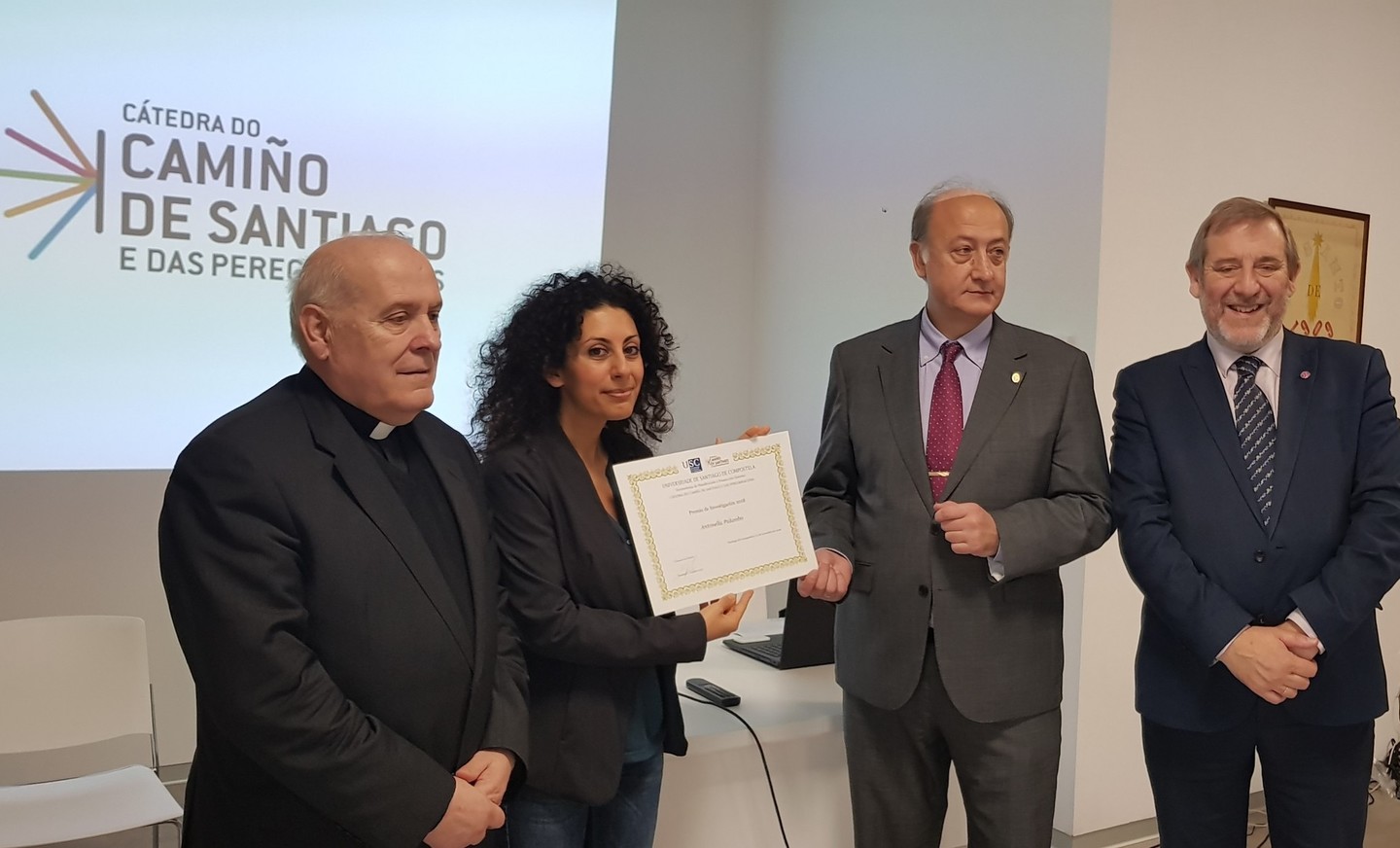 La Cátedra del Camino de Santiago y las Peregrinaciones, impulsada por la Consellería de Cultura y Turismo con la Universidad de Santiago de Compostela y la Catedral, entregó en el Centro Internacional de Acogida al Peregrino en Santiago de Compostela su premio de investigación a la italiana Antonella Palumbo por un trabajo inédito alrededor de la peregrinación en Italia