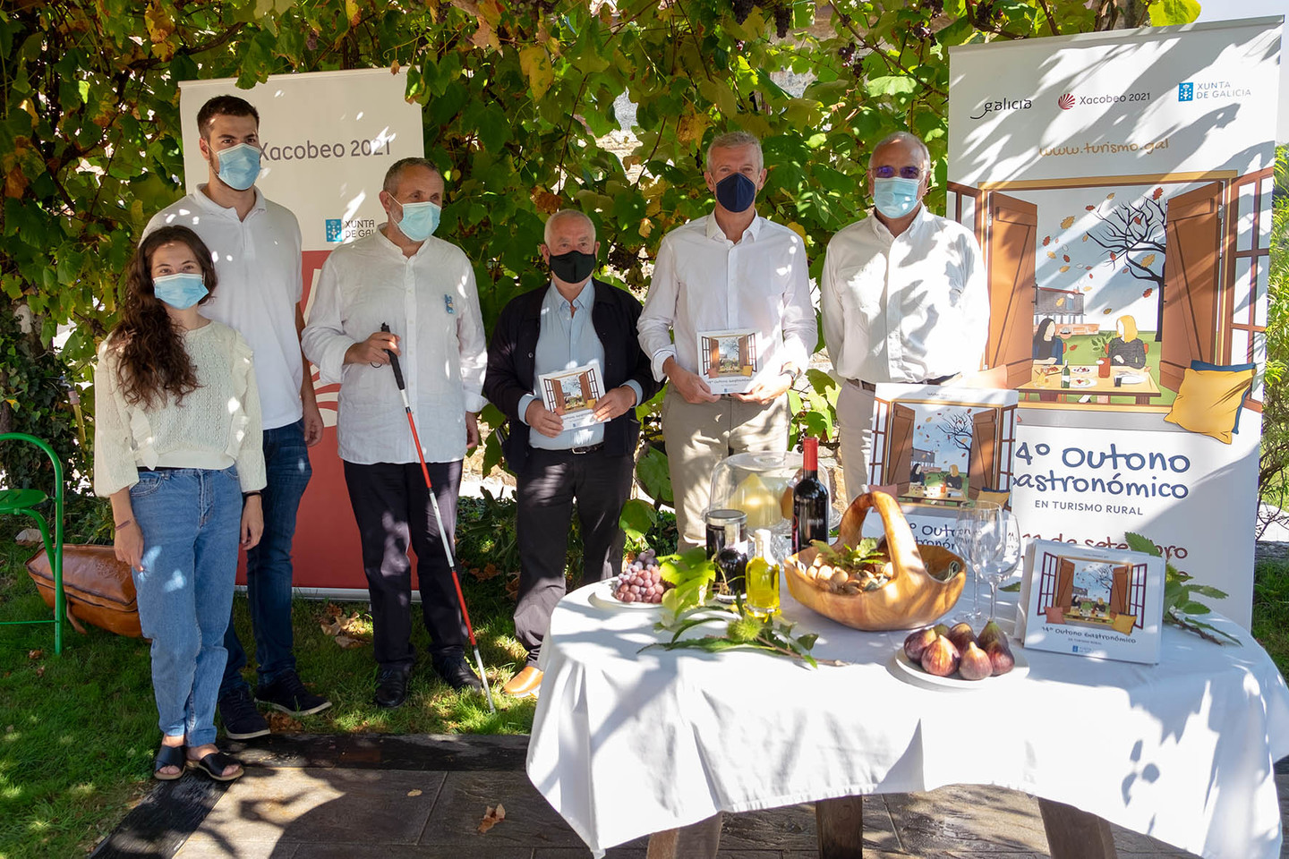 O vicepresidente primeiro, Alfonso Rueda, acompañado do presidente de Agatur, Juan Luis García e do representante de Fegatur, Francisco Almuiña, asistiu á presentación da campaña “Outono Gastronómico” na súa xa XIV edición, na que participan 70 establecementos de turismo rural galegos e que terá lugar ata o 13 de decembro.