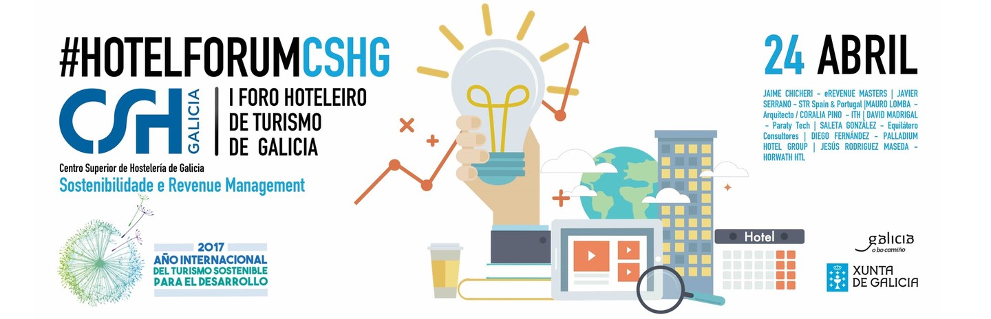 Coincidindo co Ano Internacional do Turismo Sustentable para o Desenvolvemento, Turismo de Galicia presenta o #HOTELFORUMCSHG , un foro orientado a hostaleiros no que se darán cita profesionais expertos en dous temas principais: O Revenue Management e a Sustentabilidade hostaleira.