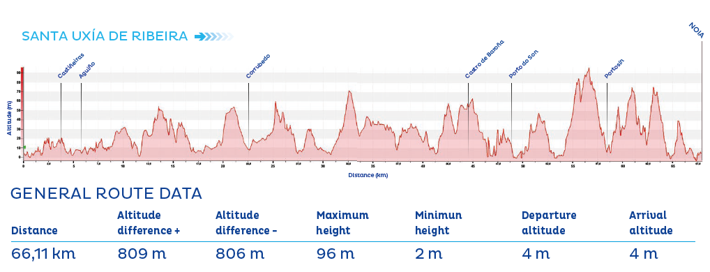 After passing through the village of Portosín, this stage ends in Noia—a town with medieval origins, whose historic centre reflects its noble past and deep ties to the sea and to stone.