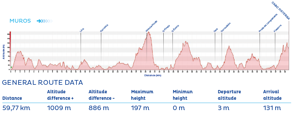 The stage concludes in the town of Muros, which boasts one of Galicia’s most beautiful historic quarters. Of medieval origin, it was declared a Historic-Artistic Site in 1970.