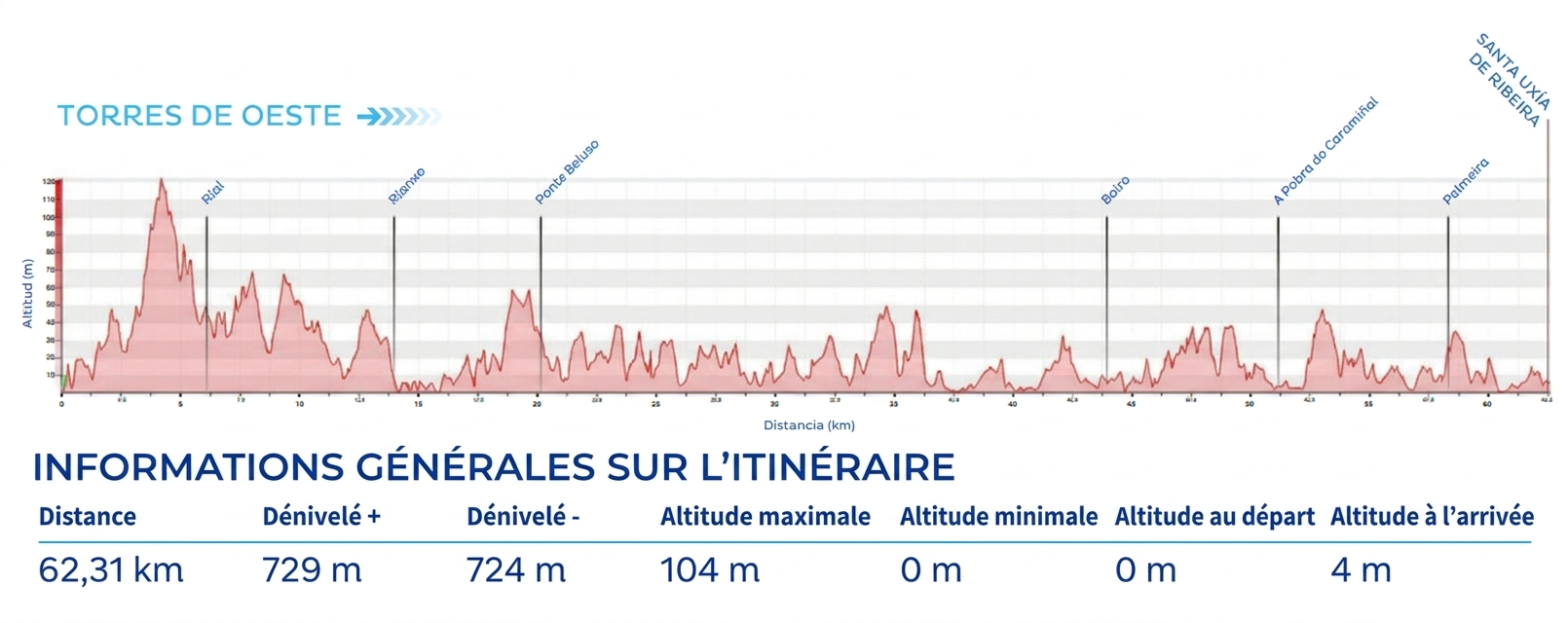 L’itinéraire remonte le cours de l'Ulla, en direction des marais de Catoira, pour rejoindre les « Tours d’Oeste », un ensemble de fortifications construites pour se défendre des attaques vikings. Ici, chaque premier dimanche d'août, une fête est organisée en commémoration de la résistance de la Galice face aux incursions normandes.