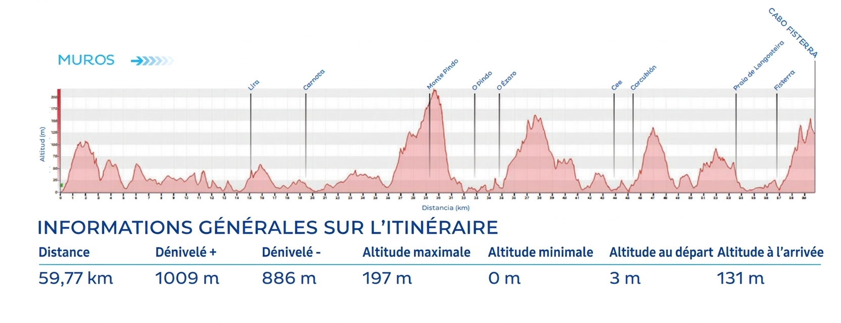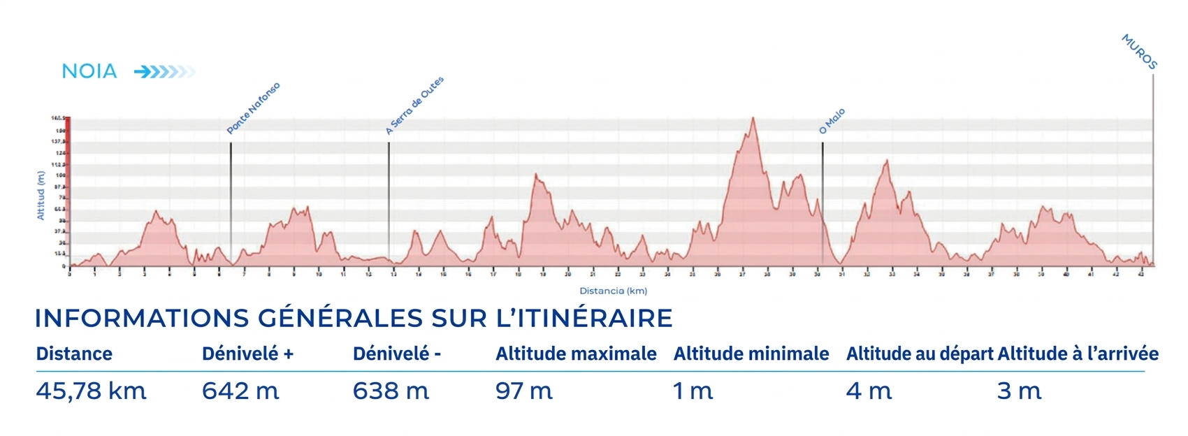 Cette étape s'achève dans la ville de Muros, qui abrite l'un des plus beaux centres historiques de Galice, d'origine médiévale et classé site historique et artistique en 1970.