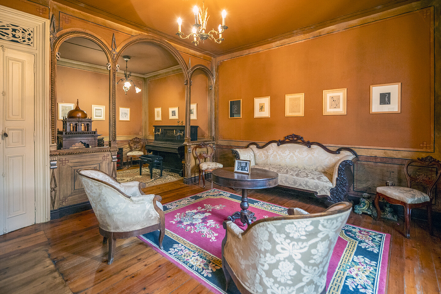 A planta principal, no primeiro piso, está dividida en diferentes espazos dedicados aos temas de arte, historia, literatura, entre outros. Estes espazos exhiben tanto obras de Risco como doutros autores e artistas cos que el tivo relación. Os espazos están coidadosamente deseñados para conservar as obras e garantir que o público se sinta benvido, como se estivese entrando na casa de Don Vicente.